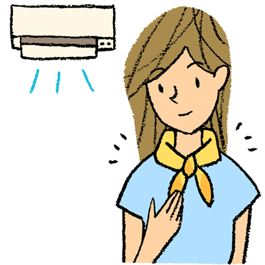 冷房がきいた場所では、ストールやスカーフを活用して首元を冷やさない工夫をするのも良いでしょう。