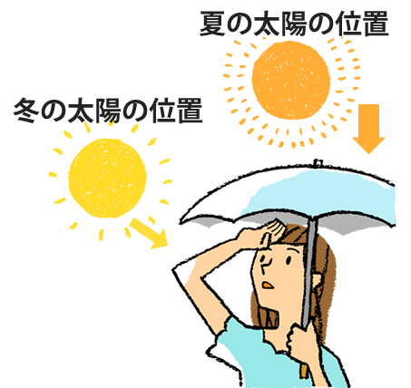 また、夏は他の季節より太陽の位置が高く、また日差しも強いため、日傘や帽子を活用してUV対策するのがおすすめです。